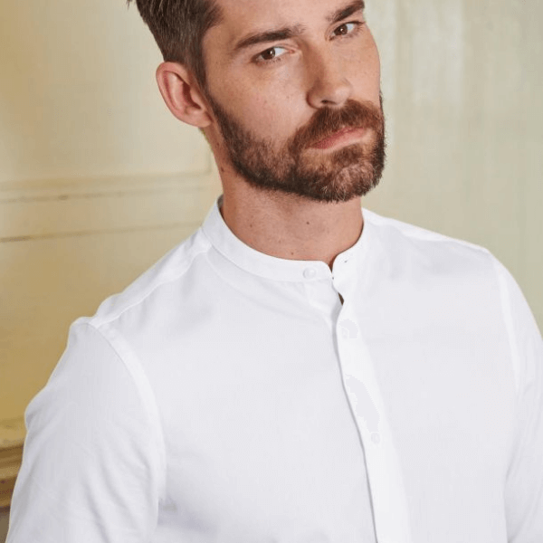 Áo sơ mi cổ trụ trở lại thành “mốt” trong những năm gần đây.